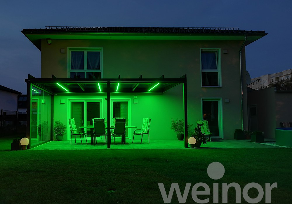 Terrazza Pure, das neue Glas-Terrassendach von weinor, setzt auf eine moderne kubische Dachform gepaart mit innovativer Bauweise. Klassische Terrassendächer sind schräg geformt, damit Regenwasser abfließen kann. Bei Terrazza Pure ist das Gefälle in die Rahmenkonstruktion integriert und deshalb nicht von außen sichtbar. Das Resultat: ein klares, kubisches Design kombiniert mit zuverlässiger Entwässerung – die perfekte Lösung für alle, die viel natürliches Licht auf ihrer Terrasse genießen möchten und gleichzeitig einen zuverlässigen, modern gestalteten Wetterschutz zu schätzen wissen.